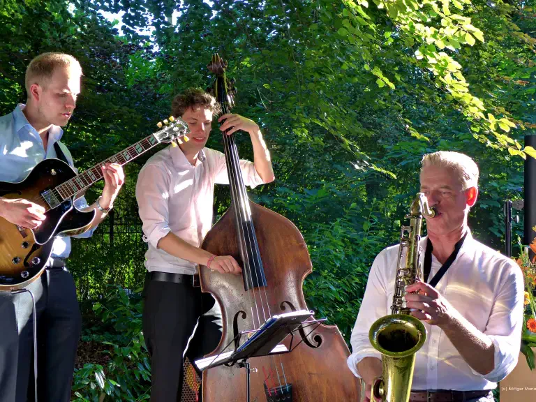 Unsere Jazzbands sind in verschiedenen Besetzungen buchbar – vom dezenten Jazzduo über ein vielseitiges Jazztrio bis hin zur kompletten Band für größere Veranstaltungen. So lässt sich die Musik genau auf Anlass, Raumgröße und gewünschte Wirkung abstimmen. Dezente Hintergrundmusik beim Empfang, stilvolle Begleitung zum Dinner oder ein lebendigeres Live-Set am Abend: Gemeinsam finden wir die passende musikalische Lösung für Ihr Event.